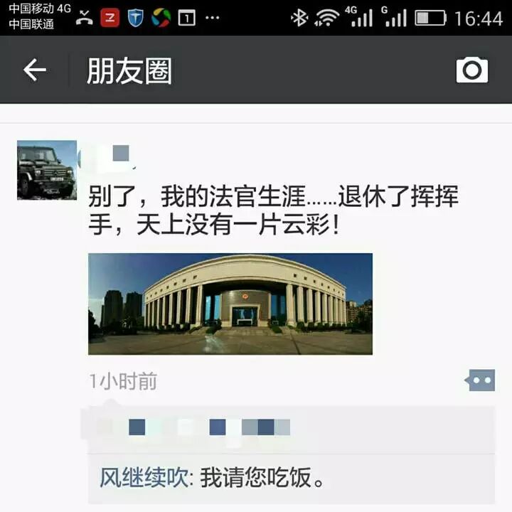 昨天,在朋友圈里看到我在法院的老领导发了这样一条微信: