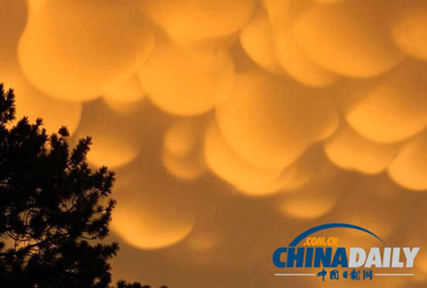 7月22日,美国密歇根城艾恩山(Iron Mountain)附近空中出现罕见的橙色“乳房云”。